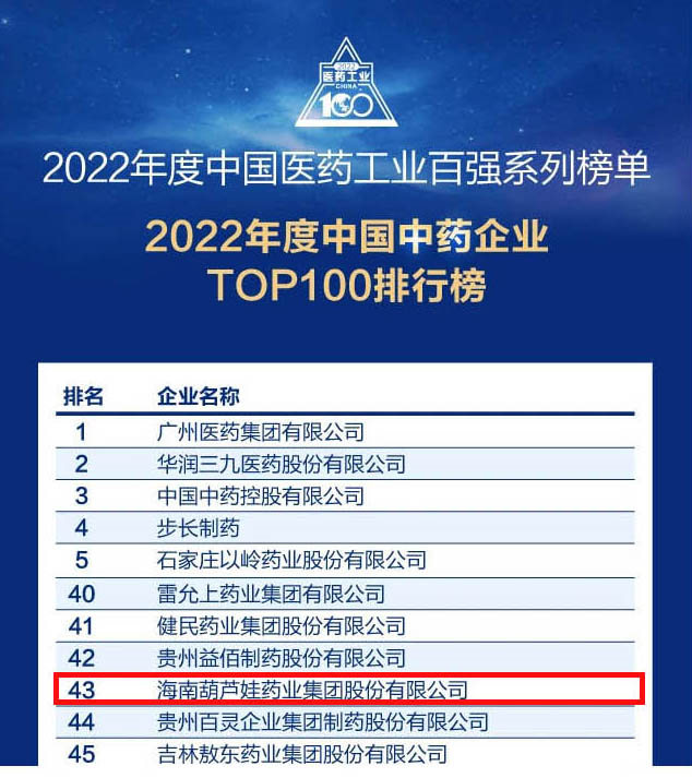会议期间,一年一度的中国医药工业百强系列榜单隆重揭晓,利博药业集团凭借领先的研发优势和扎实的生产实力以及稳健的市场推广能力,连续第四年成功入选“2022年度中国中药企业TOP100排行榜” ,排名稳步上升至第43位。